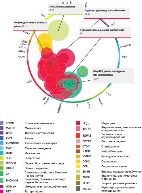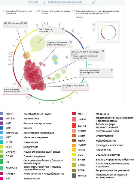 Рисунок 1.2.3 Общемировые тематические кластеры в разделе «Клиническая медицина» (данные SciVal за 20172020 гг. по состоянию на 05.05.2021)