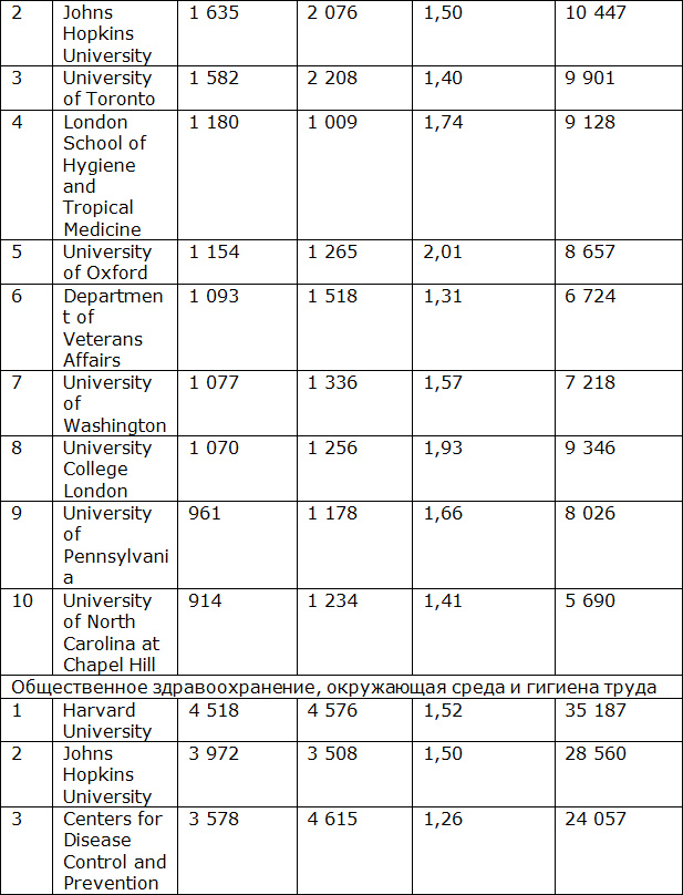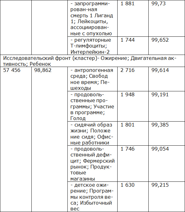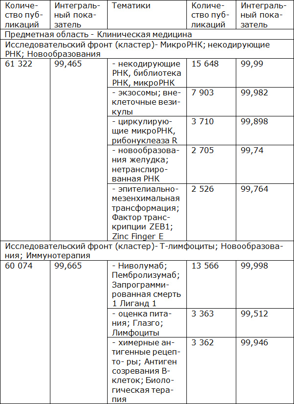 В формировании глобальной исследовательской повестки по суммарному количеству статей и доле, которую направление занимает в исследуемом массиве публикаций InCites Citation Topics, определилось несколько глобальных исследовательских фронтов это нейросканирование (84,6 тыс. статей 2,7 %), иммунология (78,9 тыс. статей 2,5 %), диетология (75,2 тыс. статей 2,4 %), ортопедия (63,8 тыс. статей 2,0 %) и психиатрия (62,8 тыс. статей 2,0 %), которые представлены в таблице 1.2.6.