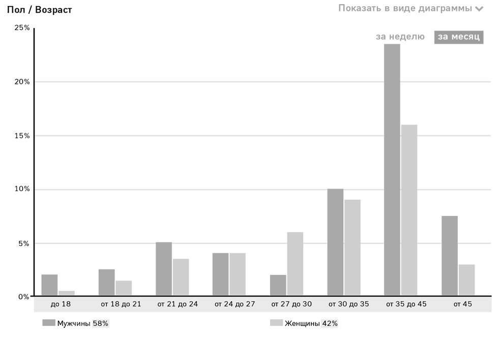Посмотрите социально-демографические характеристики и интересы своей аудитории. Эти данные можно найти в системах веб-аналитики, которые обычно установлены на сайт («Яндекс.Метрика», Google Analytics).