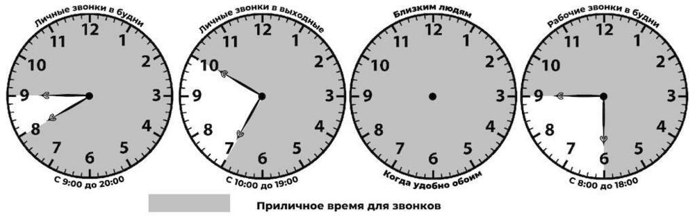 Планируя звонок, подумайте о подходящем времени. Не только для себя, но и для собеседника.
