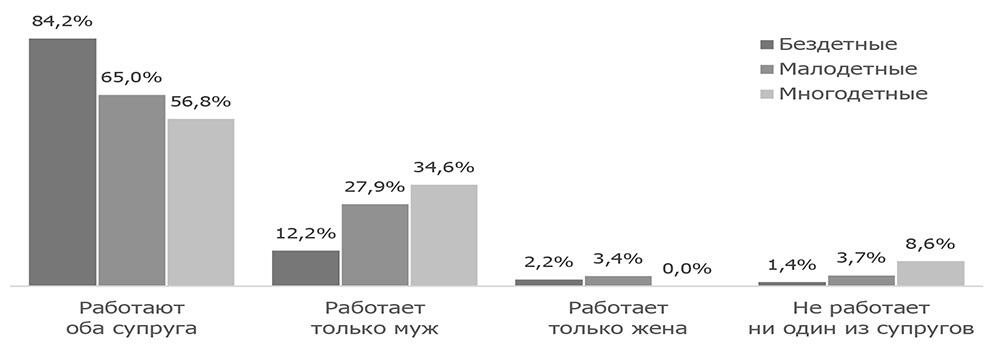 Рисунок 2. Распределение занятости супругов в зависимости от числа детей в семье