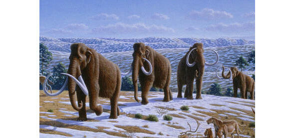 Мамонты (Mammuthus primigenius) были родственниками современных слонов. Тело мамонтов было покрыто густой шерстью. Длина волос этого животного достигала почти метра, длинна клыков была около 1,5 метров. Обитали мамонты на Севере Евразии и Америки. Мамонт прожил дольше всех гигантов ледникового периода. Самое массовое исчезновение мамонтов произошло около 8000 лет назад. Карликовая разновидность мамонтов просуществовала на сибирском острове Врангеля до 1700 года до нашей эры. (3*).