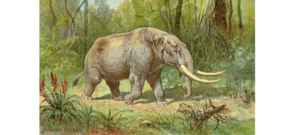 Мастодонты (Mammut americanum), как и мамонты были покрыты шерстью. По размерам они несколько уступали мамонтам, но превосходили слонов. Их рост в холке превышал 3 метра. Питались мастодонты листвой деревьев.