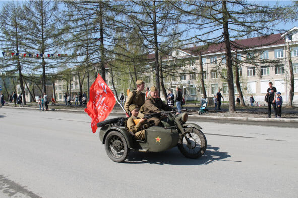 Проснулся в 8 мь часов утра. За окном светит солнце. Хорошая погода ожидается сегодня. Позавтракал и отправился к памятнику Победы, куда прибудут на митинг демонстранты и «Бессмертный полк».