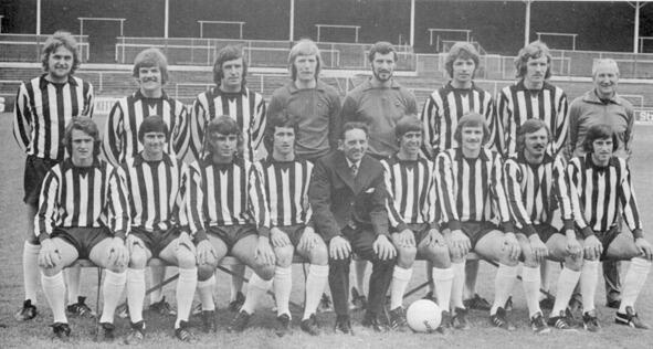 УЛЫБОЧКА, СНИМАЮ!: Основной состав «Ноттс Каунти» 197475, прошу любить и жаловать. Парадное фото перед началом сезона: помылись, побрились, уложили волосы. А если присмотреться, всё та же ватага лохматых оболтусов. Джимми Сиррел в своем вечнозеленом костюме, который войдет в моду тридцать лет спустя.