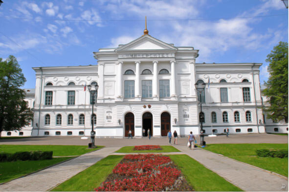 Внешне факультеты и институты представляли собой длинные и большие здания с множеством этажей и окон. Жёлтые стены и белые плиты у основание предавали его виду свежести. Окна имели белые деревянные ставни. Двери выхода имели навес. А после выхода у ворот был большой блок с золотой надписью «Тверской государственный университет». Крыша имела железный настил, который особенно блестел после дождя на солнце, в водосточных трубах застряли мокрые листья клёна. По всей территории, вдоль забора, были посажены цветы в разноцветных шинах, кусты, постриженные в ровный куб. Также у университета была собственная парковка, на которой стояли одинокие машины преподавателей.