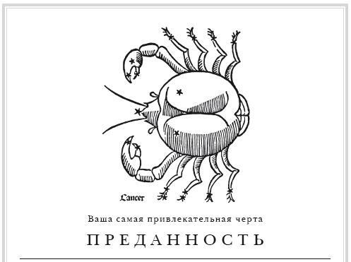 Если бы вы могли взмахнуть волшебной палочкой и загадать единственное заветное желание ваша раковина тут же открылась бы настежь, и вы отправились бы в увлекательное путешествие по миру возможностей. Эмоциональная и физическая закрытость делает вас пугливыми. Опасения Раков вызваны недостатком доверия. Вы до конца не доверяете ни людям, ни Вселенной, ни самим себе. Недавно один представитель этого знака сказал мне: «В детстве нас обманывали, рассказывая всякие истории. В жизни нет ни радости, ни счастья. Она просто трудна». Такой взгляд вреден тем, что через его узкую щелку к вам не способно просочиться никакое изобилие. Если изначально полагать, что этот мир живет по волчьим законам, то почти невозможно заметить ни доброту любимых людей, ни щедрость посторонних, ни потенциал удачи в напряженной ситуации.