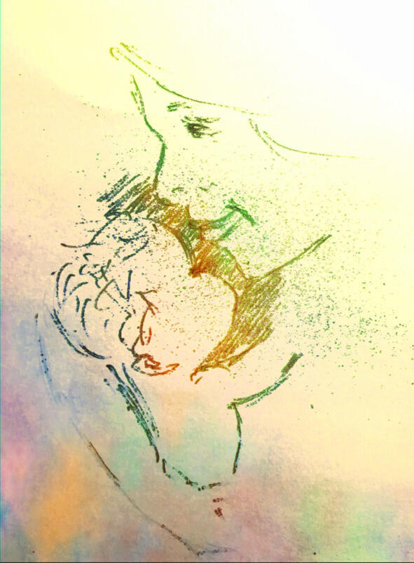 Но я не одна. Со мной еще двое юноша лет шестнадцати и девочка с косичками, примерно тринадцати лет. Эти незнакомые мне дети, так же, как и я, купаются в облаках. Но они как будто знают меня. Они улыбаются мне и смеются. Я вижу в их глазах, что то родное. Пытаюсь понять, кто они. Я вглядываюсь в их лица и вижу в их глазах себя. Это же мои дети.»