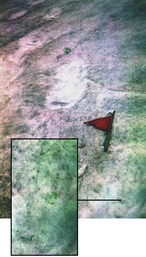 Следы огромные, примерно, может быть, две человеческие стопы, если по длине брать. У меня да же была где-то фотография черно-белая. Я туда специально фотообъектив телескопический положил, чтобы сравнить длину, поскольку линейки не было с собой.