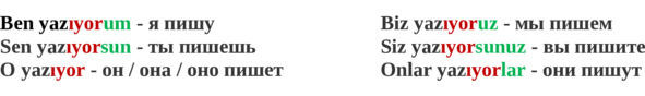 Настоящее время на -ıyor (Şimdiki Zaman), утвердительная форма