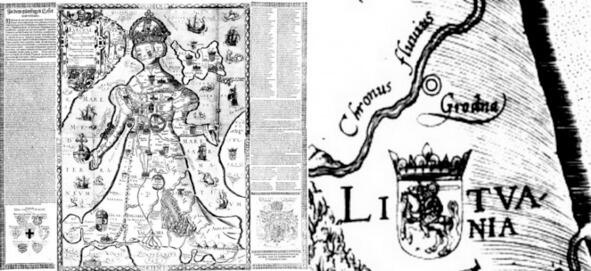 Карта Europa Regina, вариант 1587 года. Главнейший город ВКЛ Гродно.