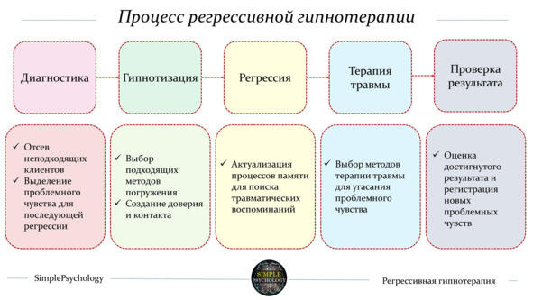 Конечно, этим не ограничиваются все вариации и разделы регрессивной гипнотерапии, однако, дальнейшее рассмотрение приведет лишь к углублению, в частности, в то время как суть регрессивной гипнотерапии в любой вариации будет оставаться той же погрузить человека в гипноз и отыскать травму с помощью регрессии, чтобы, затем, проработать ее.