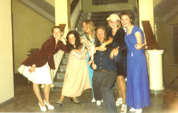 Группа «Райские птички» с продюсером Олегом Лапиным. Концерт на школьном выпускном, 1997 год