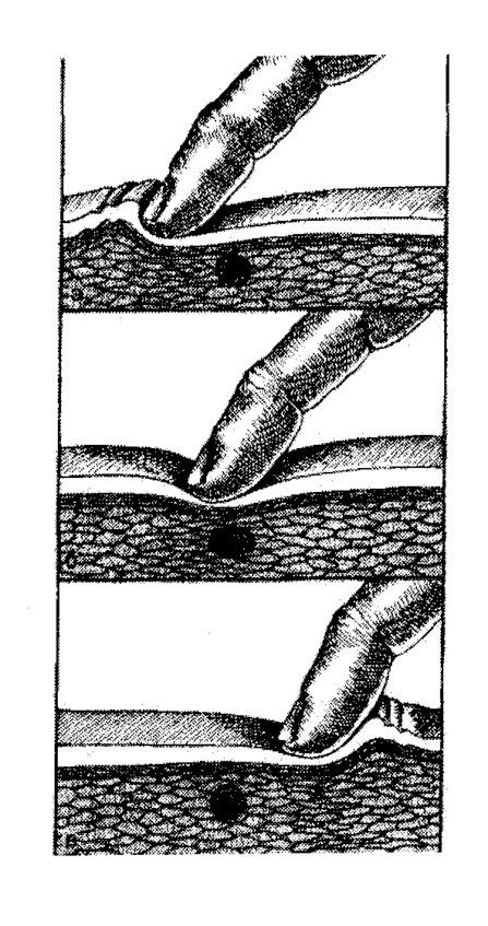 Хорошо обнаруживаются обычные триггерные точки, которые довольно крупные и хорошо заметные, расположенные в мышцах, в дали от костей. С такими триггерными точками легко работать и удобно надавливать на них.