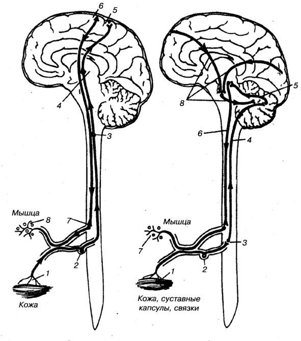 Мышцы составляют 40% от общей массы тела человека, среди мышц проходят сосуды и нервы. Кости выполняют опорную функцию и приводятся в движение мышцами и сухожилиями. Мышцы дают команды сухожилиям и управляют ими, а также сосуды связаны с мышцами и нервы, по последним передается импульс от одной мышцы к другой через клетки от одной двигательной единицы к другой. Двигательной единицей называется группа мышечных волокон, иннервируемых одним нейроном. Место соединения называется синапсом, где происходит контакт между нейронами. Так импульс из мышцы, ее рецепторов передается в спинной мозг, а из спинного мозга в центральную нервную систему.