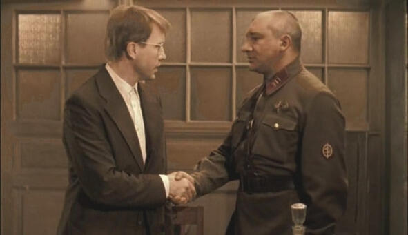Сотрудник НКВД путём манипуляции на чувстве страха склоняет гражданина к сотрудничеству.