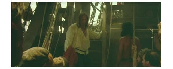 После шести дней без ветра, когда все уже устали идти на вёслах, Колумб произносит перед командой речь, к концу которой начинается сильный ветер.