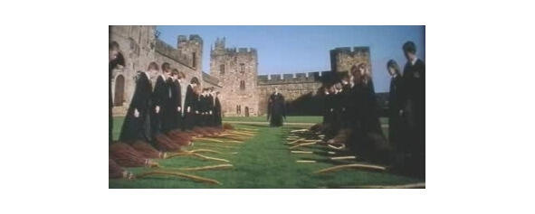 Пройдите к своим мётлам и встаньте слева от них. Вот так: правую руку протяните над метлой и скажите «вверх!»