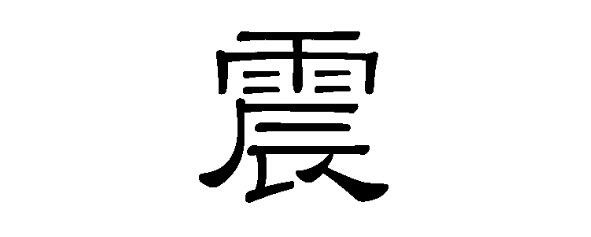 Китайский иероглиф (zhèn чжэнь) означает колебаться, трястись, содрогаться или потрясать. Основное значение иероглифа греметь, громыхать (о громе) и «Раскат грома».