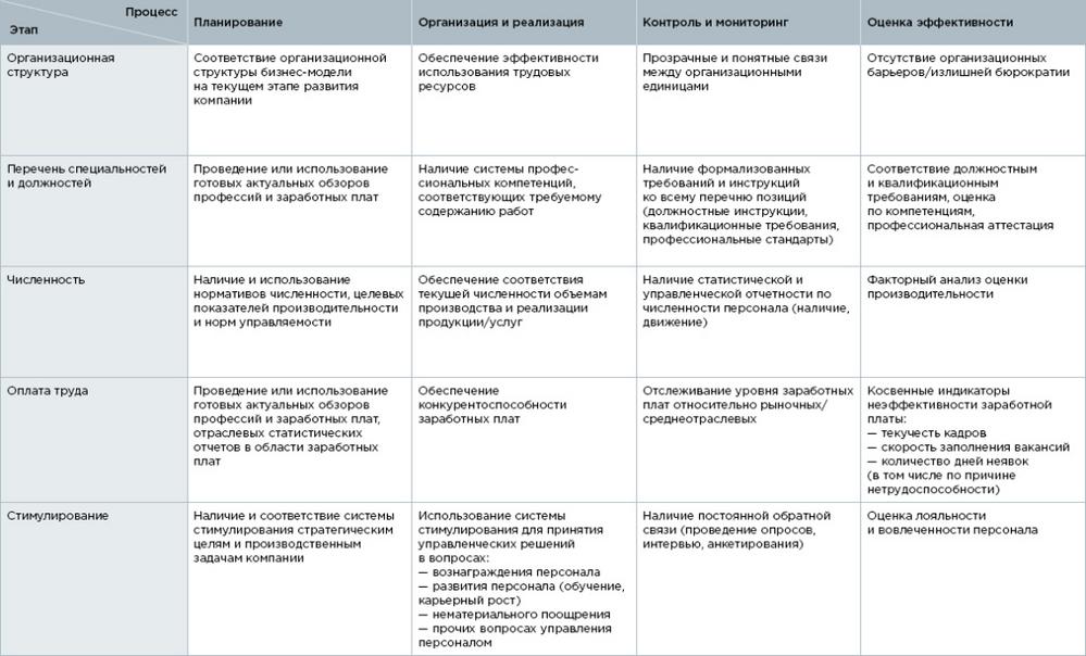 Таблица 2. Критерии оценки зрелости процессов на этапах построения системы экономики труда