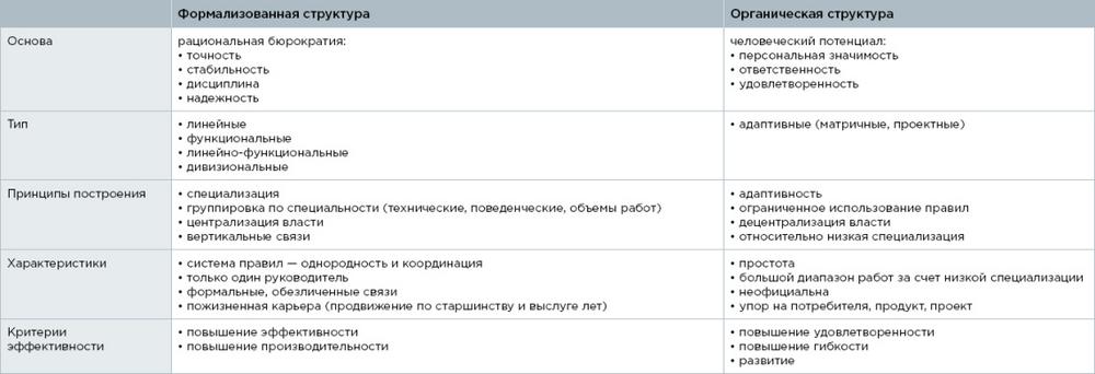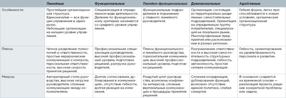 Таблица 4. Особенности, плюсы и минусы пяти типов организационных структур