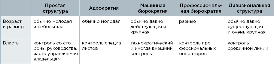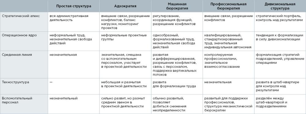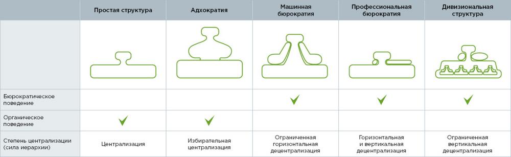 Каждая из составных частей влияет на организацию и доминирует в определенном типе структуры.