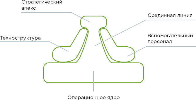 Операционное ядро работники, выполняющие функции, связанные с производством товаров и услуг основной деятельности (обеспечивают исходную базу производства, трансформируют исходные материалы в готовую продукцию, распределяют продукцию, оказывают прямую поддержку обеспечению исходных условий, трансформации и распределению результата).