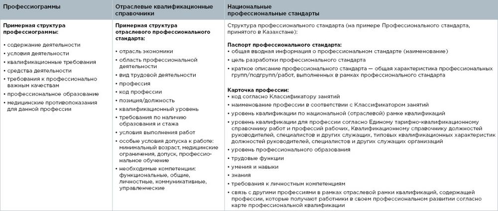 Крупные предприятия и отраслевые монополисты разрабатывают профессиограммы и отраслевые рамки квалификации, в которых формируют общие контрольные уровни профессиональной компетентности. На государственном уровне, на основе профессиональных компетенций активно внедряются национальные профессиональные стандарты.