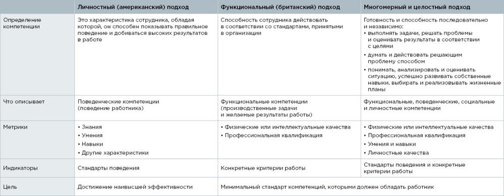 Таблица 13. Существует три подхода в использовании профессиональных компетенций