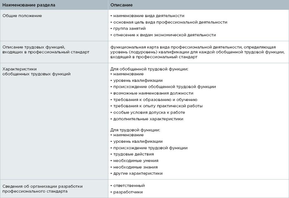 Таблица 16. Структура Профессионального стандарта, принятого в РФ [9]