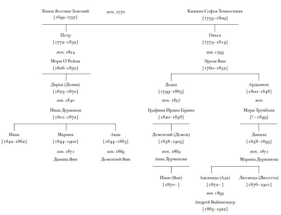 Дарья (Долли) Дурманова, бабка Вана по материнской линии, была дочерью князя Петра Земского, губернатора Бра-дОра, американской провинции на северо-востоке нашей обширной и разнообразной страны. В 1824 году князь женился на франтоватой светской особе, ирландке Мэри ОРейли. Долли, их единственное дитя, родилась в Бра, и в 1840 году, нежных и своенравных пятнадцати лет от роду, обвенчалась с генералом Иваном Дурмановым, комендантом Юконской крепости и мирным помещиком, владевшим землями в Северн Тори (Сѣверныя Территорiи), этом лоскутном протекторате, который до сих пор любовно называют «Русской» Эстотией, гранобластично и органично смешанной с «Русской» Канадией, иначе называемой «Французской» Эстотией, где не только французские, но также македонские и баварские поселенцы наслаждаются чудным климатом под звездами нашего полосатого американского флага.