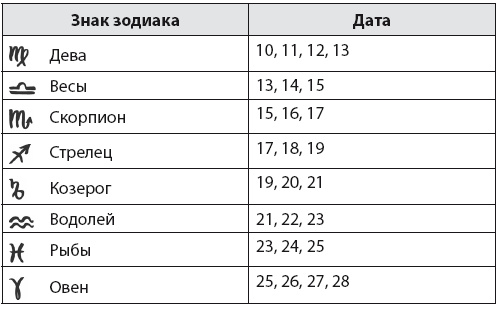 С (Козерог) 08:5316:18, Л (Лев) (у) 17:5110:30, л. д. 16, 17