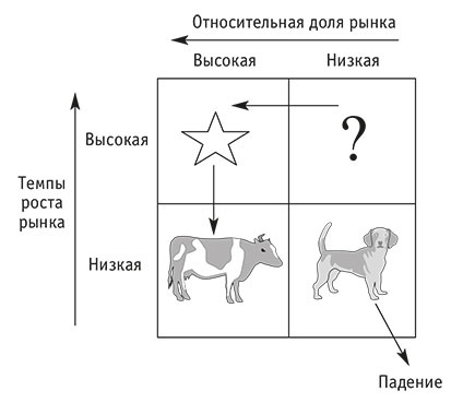 Несколько лет назад консалтинговая фирма по глобальному управлению «Бостонская консалтинговая группа» (Boston Consulting Group) разработала матрицу для классификации продуктовой линейки на основе относительной доли и относительных темпов роста рынка. «Бостонская матрица» в настоящее время широко используется компаниями для оценки своего ассортимента продуктов.