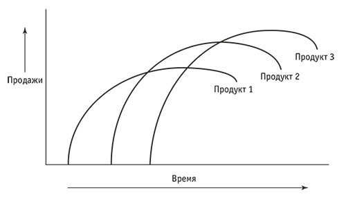 В идеале на разных этапах своего жизненного цикла ваша компания будет иметь отдельную продуктовую линейку, чтобы можно было добиться сбалансированного роста и минимизировать риски. На рисунке 3.2 показана типичная продуктовая линейка.