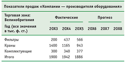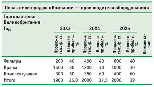В таблице 2.2 показано, как можно представить цифры для «Компании производителя оборудования» с целью их использования в маркетинговом плане для Великобритании.
