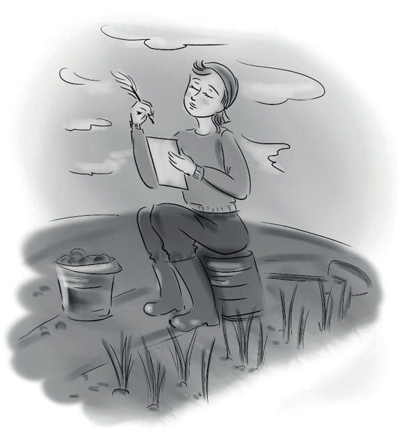 Сидит на огороде поэтесса,