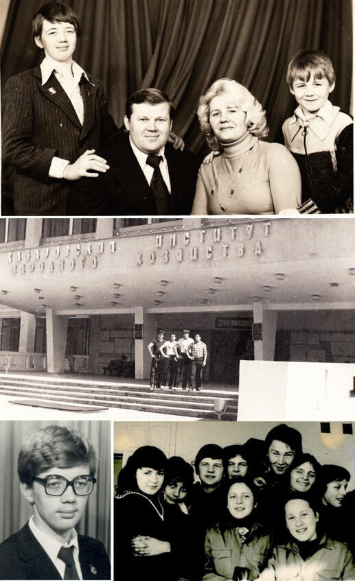 Наверху обычная советская семья, Эльбан, 1980 г.Посредине моя «альма матер», Хабаровск, 1982 г. Внизу мои одноклассники на уроке начальной военной подготовки, Эльбан, 1982 г. Фото из архива автора
