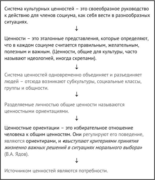 Нужно заметить, что с понятием «ценности» такая же история, как и с термином «культура», и даже хуже многообразие определений, авторов, теорий, походов, классификаций и типологий.