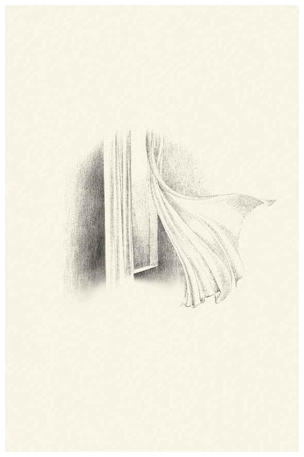 На окне гардины шевелятся.