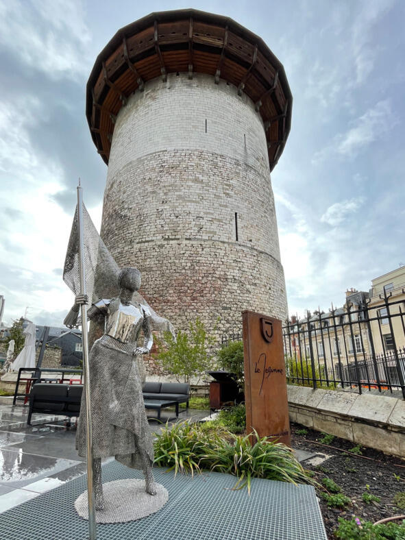 По одним данным Орлеанскую деву держали в этой башне во время суда. Другие пишут, что это не так: тюрьма, где сидела Жанна, находилась в соседней башне, нынче не существующей, а в этой проходил суд. Тут же ей показывали орудия пыток. Дескать, будешь упорствовать и давать не те показания, тогда вот, что тебя ждет.