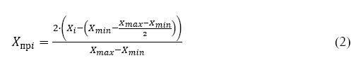 где пр значение параметра, приведённое к шкале от 1 до +1;