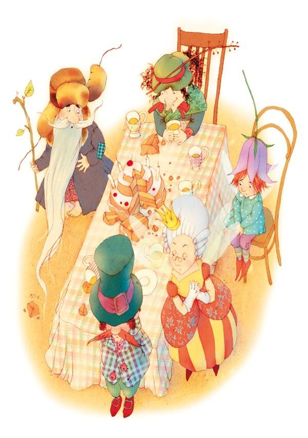 Так он и сделал. Тётушка Кикимора тоже не обрадовалась подарку. Накануне у неё разболелась печень, и доктор строго-настрого запретил ей есть молоко, масло и яйца. Она долго думала, как ей быть, и в конце концов решила: «Я знаю, кому отнести эту корзинку. Эльф Чирк обожает печь сладкие торты и пирожные. Думаю, она ему пригодится!»