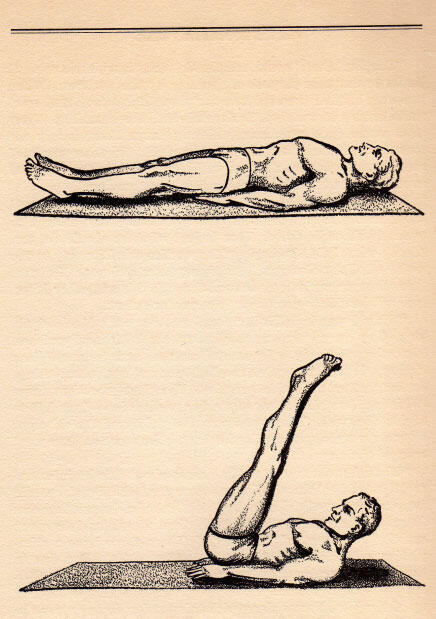 Как я уже говорил, человек должен лечь во весь рост на свой «молитвенный коврик» или кровать. Затем следует положить руки плашмя вниз вдоль бедер. Пальцы следует держать близко друг к другу, а кончики пальцев каждой руки должны быть слегка повернуты друг к другу. Затем ноги поднимаются вверх, пока ноги не станут прямыми вверх. Если возможно, пусть ноги немного вытянутся назад над телом, по направлению к голове, но не позволяйте коленям сгибаться. Затем медленно опустите ноги на пол и на мгновение позвольте всем мышцам расслабиться. Затем выполните этот ритуал заново.