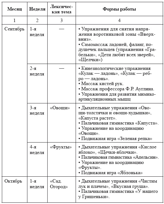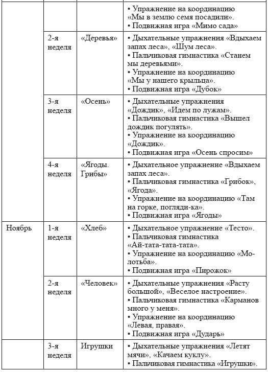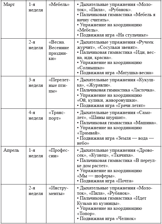 Планирование работы по развитию речедвигательной координации детей старшего дошкольного возраста