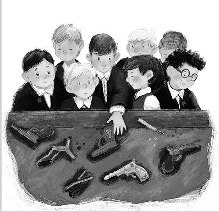 И мы стали палить изо всех пистолетов сразу. Мы хотели во что бы то ни стало помочь красным. Я всё время палил в одного толстого фашиста, он всё бежал впереди, весь в чёрных крестах и разных эполетах; я истратил на него, наверно, сто патронов, но он даже не посмотрел в мою сторону.
