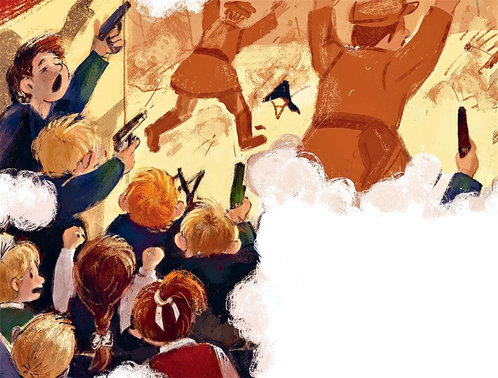 И все ребята из «А» и «Б» достали пугачи с пробками и давай бахать так, что потолки затряслись и запахло дымом, порохом и серой.