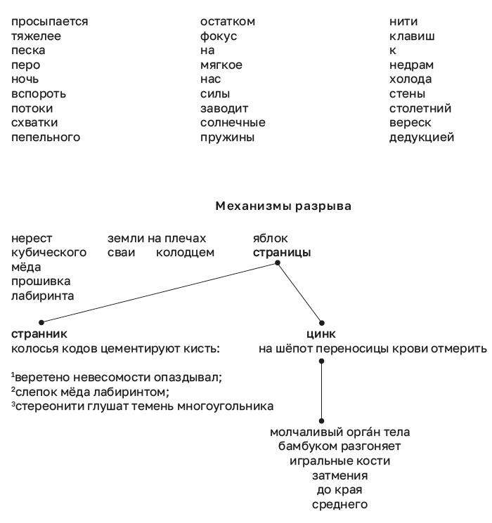 *Газ гладит воздух, как тень птицы рассекает мякоть, застеленную солнечной простынёй, стены. Предложи способ уйти от картины мира. Хор внутри стальных каркасов перенимает умение строить пение над голосами. Вернись вперёд. Куски материи, разносимые ветром, снопы искрят при лунной сварке, мель надрыв глубины это то, что осталось от нас в этом тихом дожде.