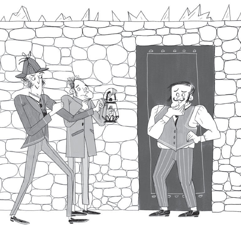 Было почти одиннадцать часов. По небу ползли тяжёлые тучи, сквозь которые изредка выглядывала луна. Таддеуш Шолто снял одну из каретных ламп, чтобы осветить нам путь, и мы направились к единственной железной двери в дом, окружённый высокой каменной стеной с битым стеклом поверху. Таддеуш постучал.