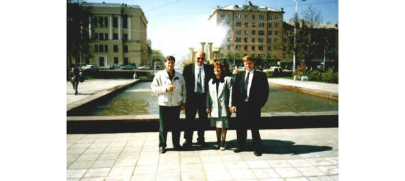 Рязань, Театральная площадь, конец 90-х годов. Женя Ковалев, Саша Кудряшов, Лена Пожарская, Коля Дорофеев