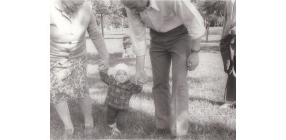 Бабушка Лена с внуком Сашей. Москва, Ленинские горы, 1976 год